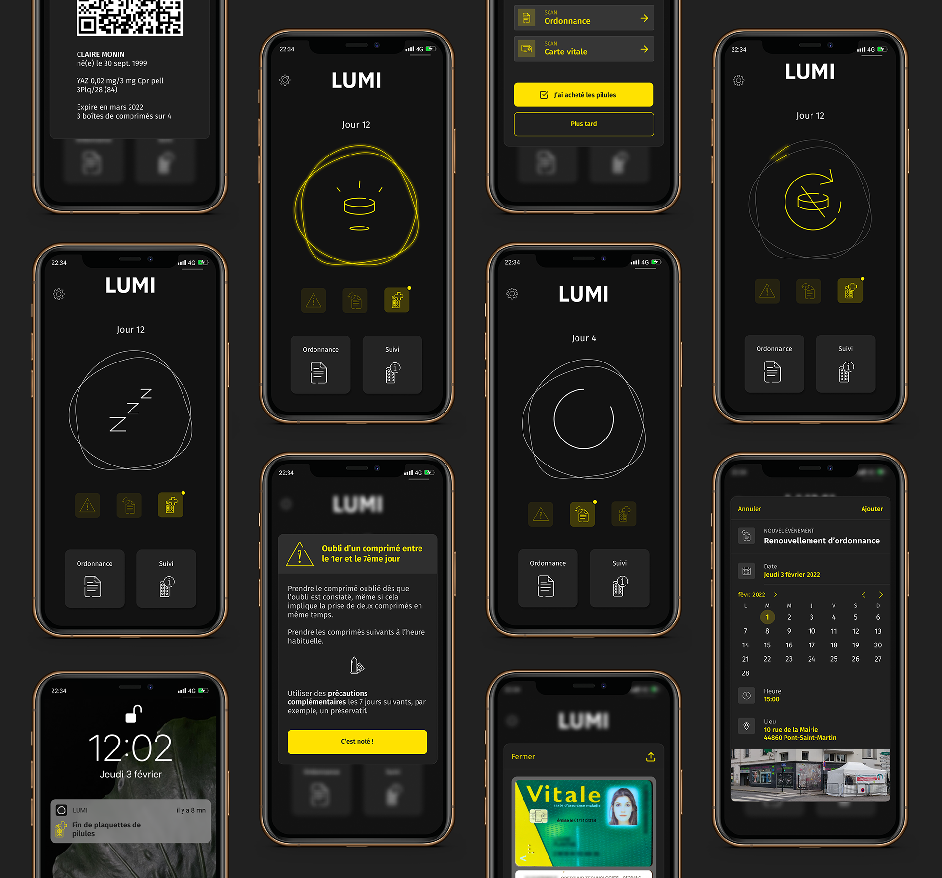 Lumi est un luminaire contraceptif qui accompagne les couples dans la prise de la contraception orale. Il assure et apaise le suivi de cette contraception. Son éclairage est indicateur de la prise de la pilule. Accompagné d'une application, Lumi facilite les démarches médicales, conseille en cas d'oubli de pilule et informe sur la prise de celle-ci. Sa visibilité permet d'inclure l'homme dans la responsabilité contraceptive du couple. Il aide à partager le travail contraceptif entre deux partenaires et ainsi, libère la femme d'une charge mentale conséquente.
